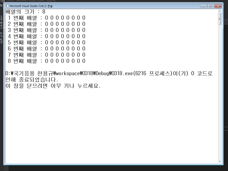 이 부분만 달라졌다는 것을 알 수 있습니다. c에 비해서 굉장히 간단하죠? 그래서 메모리 동적 할당은 c++로 해주는 것이 유리합니다. 자 이 상태에서 실행해보겠습니다.