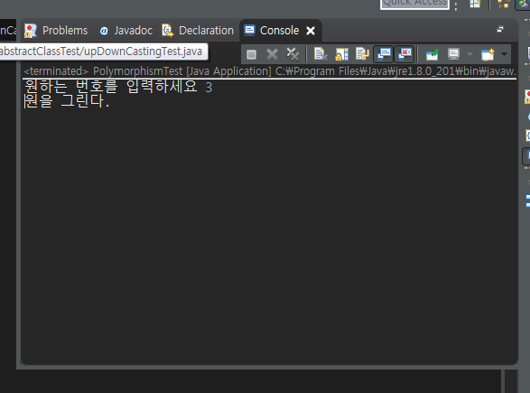 3번을 입력하니까 Circle 클래스의 draw()메소드가 실행되는 것을 알 수 있습니다.