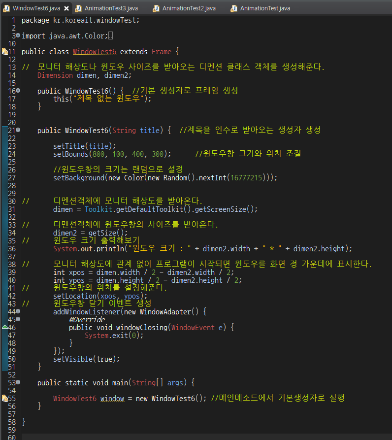 WindowTest6 window = new WindowTest6(); //메인메소드에서 기본생성자로 실행